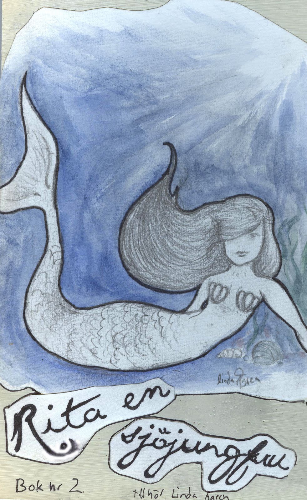 This piece of art is very dear to me. Yvonne Prytz had this tiny sweet boutiqe with antiques, presents, things she sew herself.. etc. Turns out one of the companies she orderes from is.. Agora Gifthouse! If you remember the first entry, the sticker on the book I found said exactly that. So, very kind and all, she ordered some of them for me.. more sweet, white, fairybooks to collect mermaids in! I could have a library of them I thought. And, while she ordered these.. she asked about the idea behind it. She thought it was neat, and started to tell the story to other customers. Then I asked if SHE wanted to draw, and she surely wanted to! When I came to get it she had drawn this beautiful mermaid, with a golden pen och some golden stickers for the tail, and the mermaid looked a bit like Attina I thought, from my old books about Ariel I had as a child. Next to the picture, besides her name and date, she wrote "Thanks for the confidence in me!". I trusted a complete stranger with the book, she must have felt appreciated :) Her picture was the last one in the first book, a perfect ending!